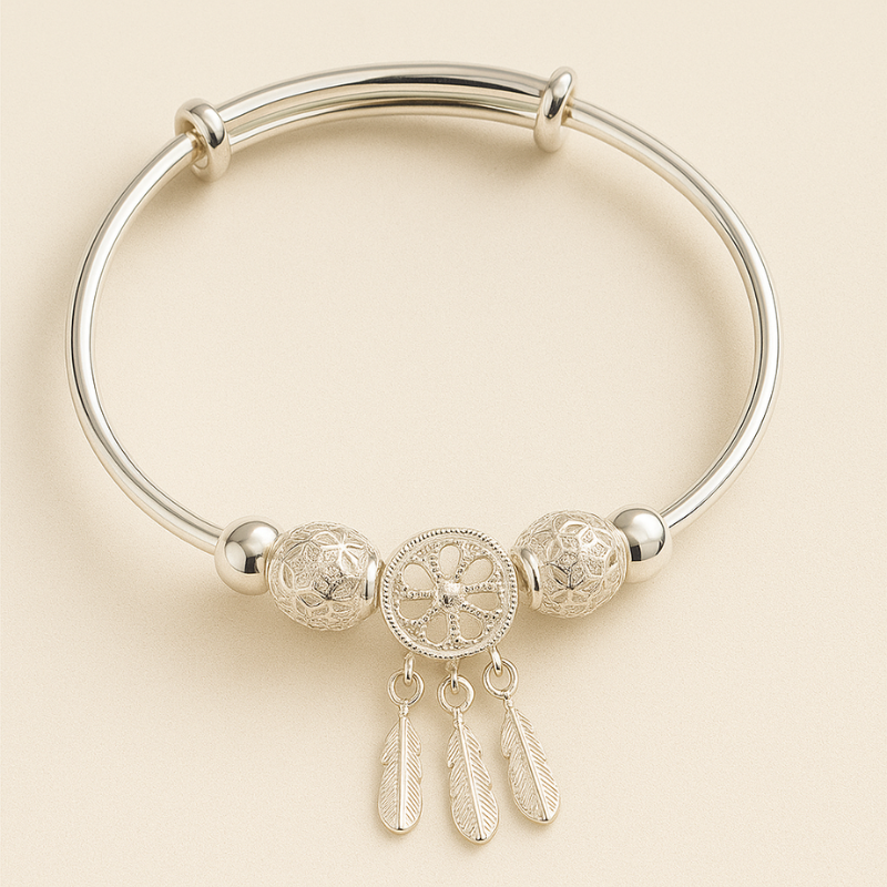 Bracelet Attrape-Rêves Protecteur en Argent Sterling 925 — Ajustable & Élégant